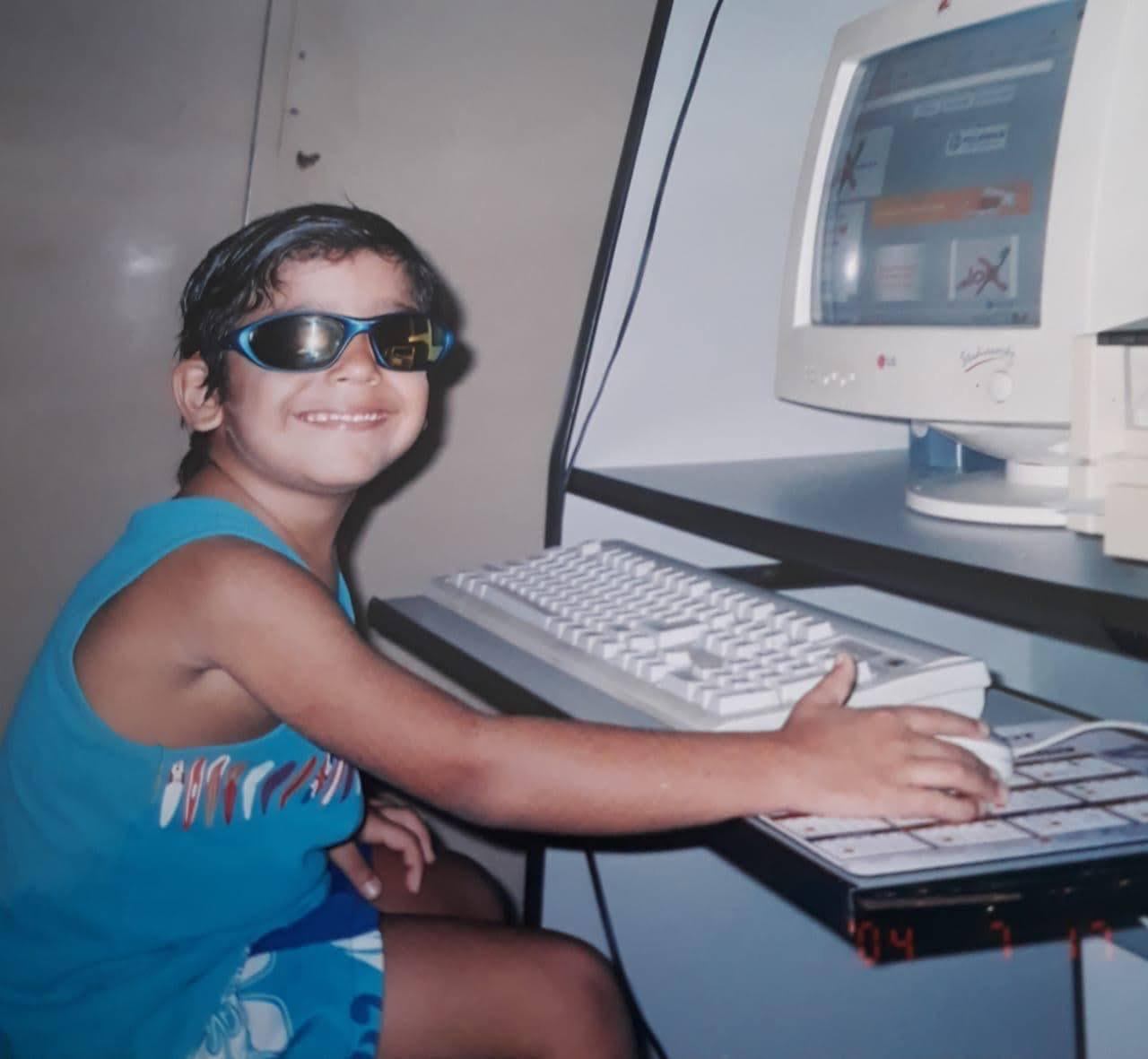 In this photo, you see a young boy in Salvador, Bahia, sitting in front of his first computer. This is me at 7 years old, sharing a home computer with my four siblings. Little did I know at this moment, this would be the single interaction with technology that would forever change the trajectory of my life.